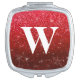 Beautiful Simple Elegant Ruby Red Glitter Monogram Compact Mirror