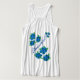 Denim blue floral patterned ladies sleeveless racer back tank top designer t-shirt, flowy sportswear. Beautiful text can be personalized with your inspiring message, or text is also removable. Flowers in blues on back of top are also removable, custom color, size and text options to create your beautiful fitted summer top.