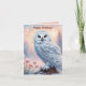 Beautiful Snow Owl, pink flowers. Editable name Note Card
