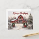 Beautiful Snowy Winter Rustic Red Barn Christmas Holiday Postcard