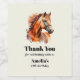 Birthday thank you bottle labels with a beautiful illustration. A copper brown chestnut colored horse head and upper body. With watercolor patches behind.