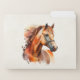 File folder trio with a beautiful illustration. A copper brown chestnut colored horse head and upper body. With watercolor patches behind.