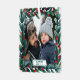 Decorate your Christmas tree this holiday season with a personal square ornament personalized with a photo on either side and the year. The perfect ornament for your baby's first Christmas or your first Christmas as married or any other significant milestone as well as a yearly family photo or yearly photo of the kids. Personalized ornament with your photo inside a pretty square Christmas wreath with green leaves and red berries.