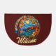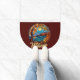 Beautiful doormat for home or business features AI generated stained glass style Fall scene with Autumn leaves, water and cliffs in the distance. Personalize with name or other message