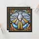 Elegant and colorful stained glass window dove memorial service invitation template. This beautiful black and gold dove funeral notice is easily customized for your event by simply choosing the customize it button to begin.