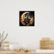 Beautiful Steampunk Woman on the Moon on a Black Background surrounded by flowers.