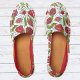 These shoes are amazing, well constructed, vivid color durable fabrics, can wear comfortably without socks…and pick your liner color. I ordered several and wore all Summer into Fall. A GREAT choice and hundreds of fabrics to choose from! Thanks so much to the designers…a real winner!! Order one size up to wear with socks. Usual size is snug at first but does stretch after several earrings. .