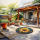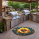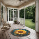 Transform your outdoor space with the stunning beauty of our Sunflower Radiance outdoor rug. This design features a grand sunflower in full bloom, framed by a striking round metallic circle that adds a touch of sophistication. The intricate details of the sunflower and frame are rendered with a 3D effect, giving the illusion that the design has been expertly carved from wood. The vibrant, golden sunflower and sleek metallic frame create a dynamic and timeless visual impact, perfect for adding a touch of nature-inspired elegance to your patio, garden, or deck. Crafted for durability and style, this rug will enhance your outdoor living area with its captivating charm.