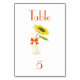 A beautiful sunflower wedding table number, this design is set upon a white background. The text features "Table" in orange font with a single sunflower inside of a mason in the center. Underneath that is the table number also written in orange. Personalize yours today!