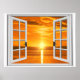 Beautiful ocean sunset view, faux window for a windowless office wall. Fun, realistic optical illusion scenic poster for an office or study wall.