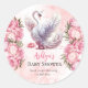Beautiful Swan Pink Floral Girl Baby Shower Classic Round Sticker