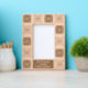 This beautiful frame is engraved with ceramic tiles like patterns. A very elegant combination of dark and light tiles, and on the bottom, a frame where you have three lines to write your very own message.