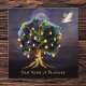 This beautiful business card design features a magical tree illuminated with glowing string lights and lanterns in front of a glowing starry night sky and the moon.