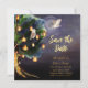 A beautiful wedding Save the Date template featuring a magical nature scene with a tree decorated with lanterns and string lights, a full moon and starry night sky, and two owls. This template can be easily updated with your information. If you need assistance with your personalization or additional custom items, feel free to contact me using the message button.