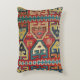 This handsome design, originating from a fragment of a hand woven flat weave rug, is abundant in visual impact. The original antique Kilim is approximately 150 years old. The design's wonderful colors include rose red, midnight, navy, rich royal blue, turquoise, camel, and creamy white. This is an ancient tribal design that is still stylish today and will be for many more years to come. Classic design never goes out of style and will enhance many different decors, including Boho, Farmhouse, Traditional and Modern.