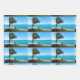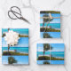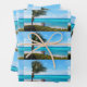 Wrapping paper sheets with a scenic photograph. A clear blue ocean with a white sandy beach. A palm tree swaying in the wind.