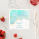 Paper napkins with a vibrant summery design. Turquoise / aqua green watercolor image with a wavy faux gold border. Elegant and lovely.