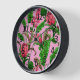 Beautiful Tropical Green Leaves with Red Flowers | Clock