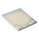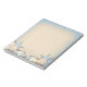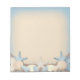 A beautiful custom notepad with an exotic beach theme. A pretty sand texture background pattern in neutral cream tones and shades of ocean blue. On top are a variety of pebbles, shells, sea urchins, starfish and pearls.