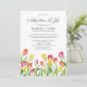 Discover the perfect way to announce a memorial service with our beautiful Celebration of Life Announcement Invitation. This elegant sympathy template showcases a classic white background adorned with watercolor spring summer tulip flowers in a stunning array of red, yellow, and pink. Personalize this beautiful design and create an unforgettable tribute to your loved one's life.