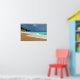 Poster with a beautiful photograph featuring a turquoise blue sea and a sandy beach with waves of foamy surf.
