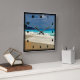 A clock with a beautiful photograph featuring a turquoise blue sea and a sandy beach with waves of foamy surf.