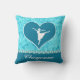 Dance throw pillow with a beautiful turquoise design. It has a teal (or turquoise) heart with a ballerina dancer silhouette, and printed turquoise brads. (NO real brads, it's just part of the design). Add your name before ordering!