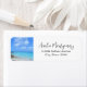 Address labels with a scenic tropical photograph. A secluded beach with white sand and turquoise water.
