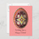 A pysanka is a Ukrainian Easter egg, decorated using wax and dye, sort of like batik. The word comes from the verb pysaty, "to write", as the designs are not painted on, but written with beeswax, and then the egg dyed. This beautiful pysanka card makes a unique Easter greeting. Add your own text to personalize it.