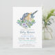 Beautiful Unicorn Blue Floral Boys Baby Shower Invitation