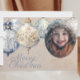A beautiful photo Christmas card featuring blue and beige vintage ornament graphics.