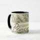 Beautiful Vintage white dove surrounded by foliage carrying a Peace banner black and white