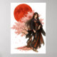 Elegant fantasy illustration of a samurai woman beneath cherry blossoms and a red moon, blending Japanese aesthetics, dramatic mood, and high-detail digital art. Available in multiple colors. Artwork optimized for dark and light apparel or merch.