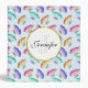 A personalized binder with a beautiful pattern. Watercolor butterflies, painted in pastel colors including pink, purple, blue, yellow and green. A light blue watercolor background with hints of light pink. Personalize with your name and monogram letter inside a white circle with a faux-gold foil border. Your personalized binder subject written on the spine.