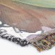 A quality printed throw has its advantages. This is a much finer weave throw than its loopier cousins, and though lighter, it is worth the investment for custom room accessorizing. The back is much prettier than the typical brown, and the fringe on the long sides very vivid, the selvage nicely done. Before photographing, I washed the throw in cold water, delicate, with a thicker woven throw the same size. On tumble dry low, this throw was dry in half the time as the other. This is a very practical quality if you use throws for furniture covers or to wrap up in frequently. The sleekness of the fabric makes it a great layer for accenting or protecting without the feeling of sitting on too much stuff. Perfect for napping or when you feel a light chill coming on. The color printing is beautiful and on this fabric, matched the design and color of my Photoshop image. This is an advantage for blending room fabrics and colors. The fringe on the short sides prints the colors from the design image and therefore varies from the side fringe. I streaked a white fractal line through the plaid pattern to give the illusion of weaving. This printed as crisp as an illusory thread, and put some white in the short side fringe, showing another advantage of print vs loomed- for artistic purposes, line lines, detail, and color integrity can be planned and preserved. My loomed throws have color limitations and more of a needlepoint texture. Print throws reproduce an exact image. The throw felt a little stiff straight out of the package, but this went away in the first delicate wash. Of course I searched the wash water for ink or bleeding and there was none.