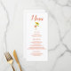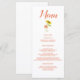 A beautiful sunflower themed menu, this design features "Menu" written at the top using cursive orange font, all of your information is printed in orange readable font on a white background. Customize as you choose.
