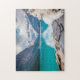 Beautiful White Dog on Rocks before Mountain Lake Louise Canada Travel Photo Jigsaw Puzzle, Unique Birthday Gift, Photography by JF Brou
