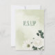 Beautiful botanical wedding response card featuring romantic white flowers with romantic dark green leaves.
