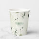Beautiful botanical paper cup featuring romantic white flowers with green leaves.