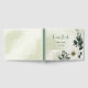 Beautiful botanical wedding guest book featuring romantic white flowers with green leaves.