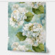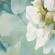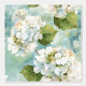 A beautiful minimalist watercolour design of white hydrangea on a blue background.