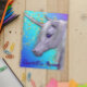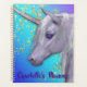 This personalized planner features a magnificent, white unicorn with a gorgeous mane and crystal blue eyes. Behind him is a blue and purple background with glittering, golden stars and magic. The name and title below (i.e. 'Charlotte's Planner') can be customized to suit where it says 'Personalize this template' above.
