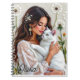 Beautiful Woman, Cat and Dandelions Personalized Notebook