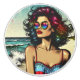 Pretty ai generated image of a pretty lady on the beach wearing sunglasses with an ocean beach background comic book style pop art.