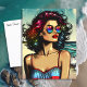 Keep and touch with a friend or family member with this pretty ai generated image of a pretty lady on the beach wearing sunglasses with an ocean beach background comic book style pop art.