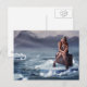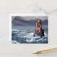 Beautiful woman sitting on suitcase postcard