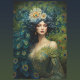 Step into a world where elegance meets the enigmatic allure of the peacock. This artful portrayal weaves a tale of timeless beauty, showcasing a graceful woman amidst a sea of mesmerizing blue and green. Her gaze is captivating, hinting at secrets known only to those who dare to look deeper.