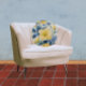 Beautiful yellow and blue flowers cover this round throw pillow. Bright and cheerful, with a French country look.