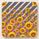 Beautiful yellow flowers on gray, pink stripes beverage coaster