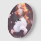 Beautiful Young Girl Amongst Pink Flowers Portrait Large Clock